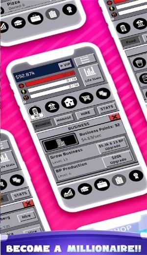 2.玩家可以选择自己没有的人生,每个人都是想要有钱并且健康的,但这需要玩家不断的努力起来,您需要在游戏中持续投入大量时间。