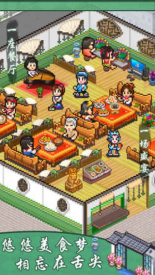 赶走了三国村的恶王,建立了长安城的统治地位,是时候停下来休息一下,享受一顿丰盛的饭菜了!时间久了,舌尖上的美食梦闪亮登场。游戏以像素风格的笔触为你打开特色美食的画卷:东坡肉、小笼包、白花菜、西湖醋鱼,一系列熟悉的菜肴出现在纸上;北京烤鸭、武昌鱼、昆明香菇、山东大葱,一种鲜食材都可以数;南方的彩云,南海的明珠,草原小镇,古韵的京城,所有的经典场景都历历在目。