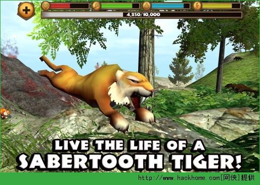 2、游戏中,你将化身凶猛的剑齿虎,依靠灵敏的闪躲与凶猛的进攻;