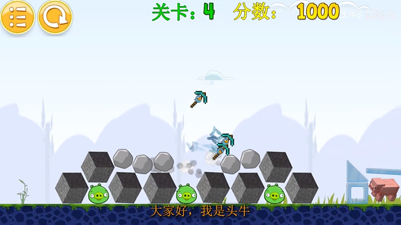 2.通过合理的发射与击中,就可以将关卡中的肥猪进行消灭,并且完成通关。