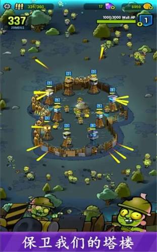 杀死僵户的僵尸生存冒险,合并和升级塔提高防御力