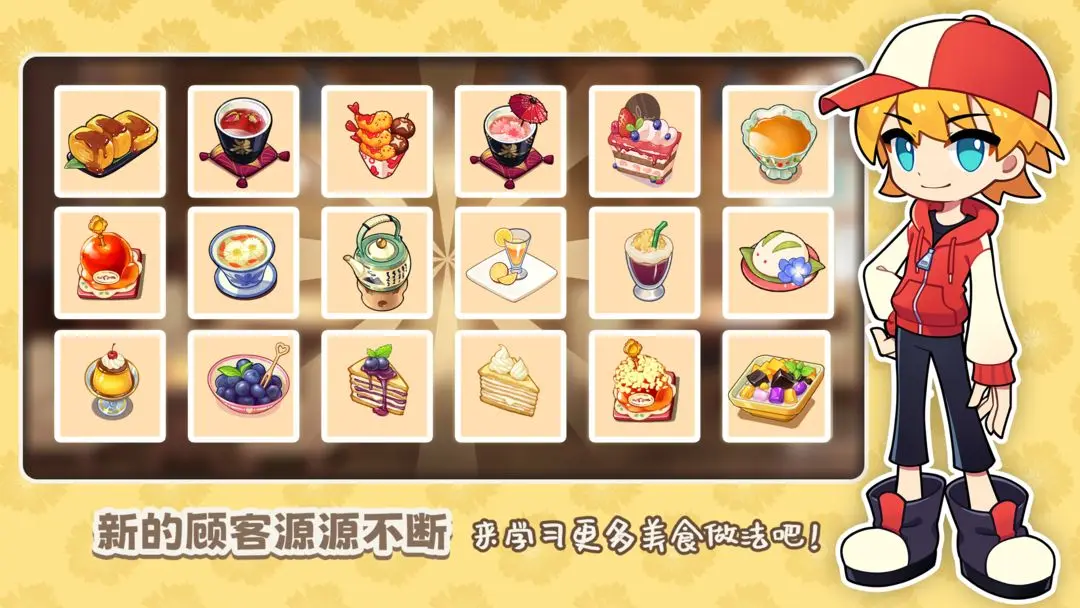 要是忙不过来,记得别忘了升级食材和设备。用更美味的食材,更称心应手的设备做出完美的饮料,收获顾客的笑容吧!