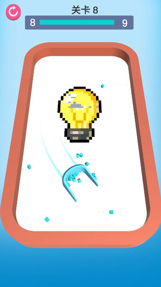 在游戏中你需要去收集很地面上的小方块,然后把这些小方块框起来,移动到对应的位置接成一块完整的图案