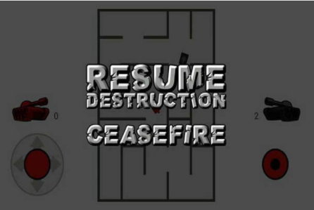 5.点击手机的返回按钮即可调出游戏菜单,RESUME DESTRUCTION是返回对局,CEASEFIRE是退出本局。
