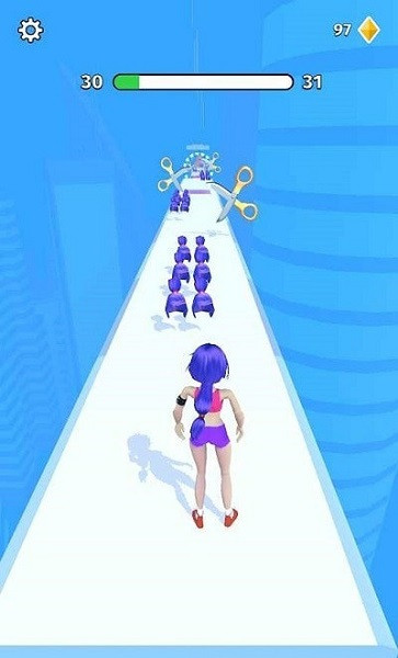 2、操控一个长发美女,在赛道上魔性奔跑,尽可能的在赛道中收集更多头发