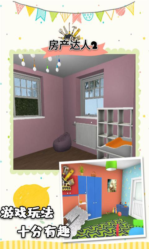 房产达人2手游是一款模拟建造类型游戏,在这里拥有着华丽的各种房屋装饰物,而且完全还原了现实世界中的生活,比如做饭、睡觉、打扫卫生、买家具等等,让你体验到不同的模拟商务。在游戏中,它提供了很多工具集和部件,包括锤子,冲床,图钉,螺丝刀和许多其他工具需要装饰房子。在这里,您可以操纵他们来装饰和设计,充分发挥您的想象力和实践,并享受不同的操作经验。