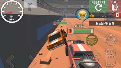 控制自己的车在一个平台上进行碰撞决斗,对手飞了出来,多人同时碰撞,其他注意的同时别被其余的玩家击中飞了,满心欢喜,喜欢的玩家来下载吧。