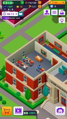 完成任务,解锁更多独特的情节,试着在游戏中管理一所大学,越来越多的学生被录取,可以获得声望和人气口碑。