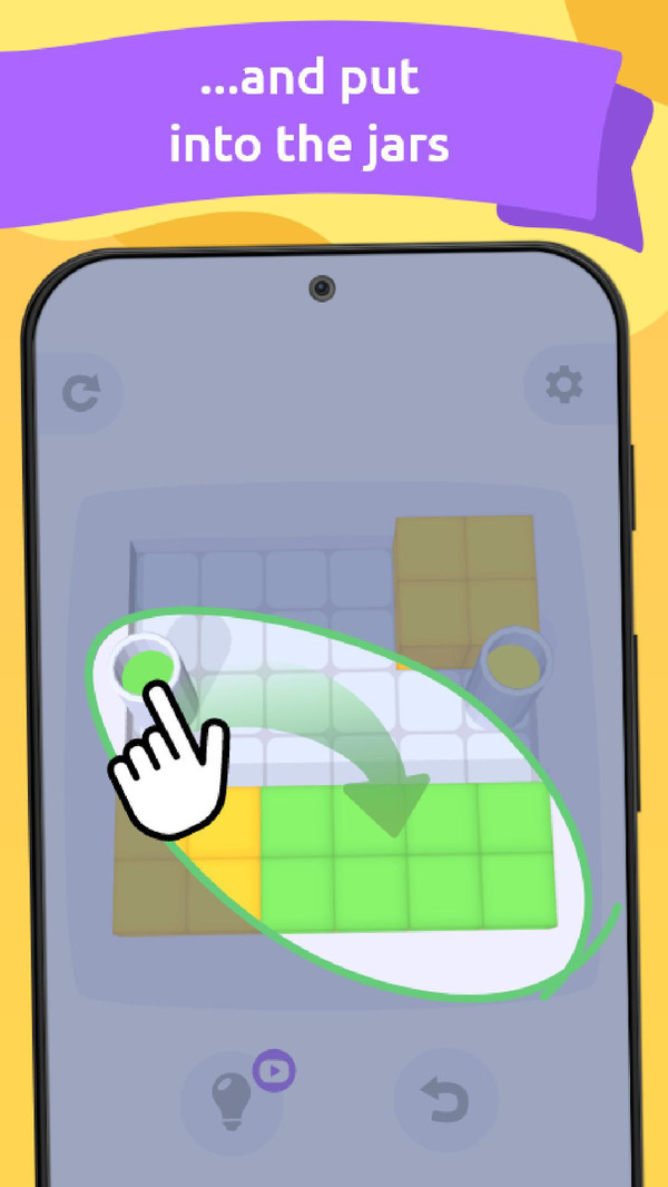 2、操作方块在游戏中移动,同时在罐子中收集果冻果冻,完成这场游戏挑战