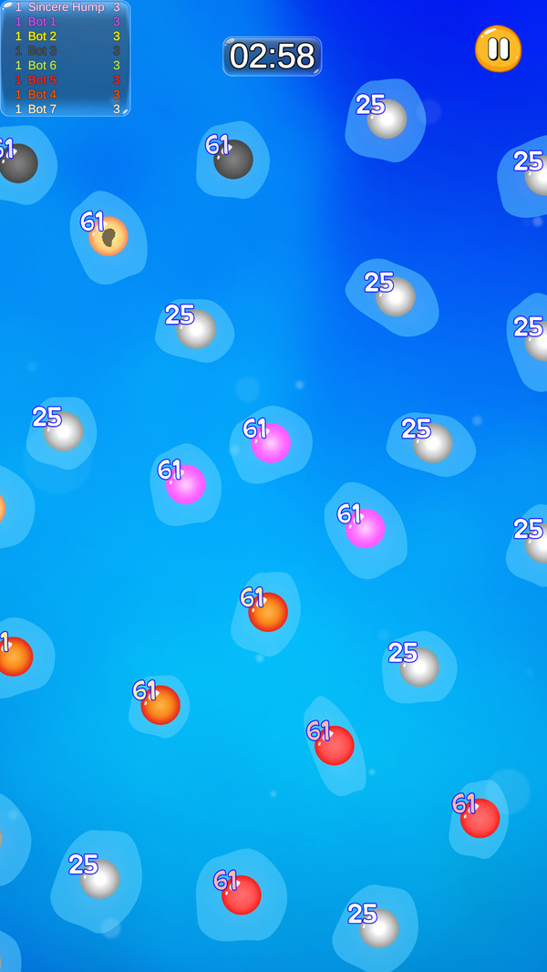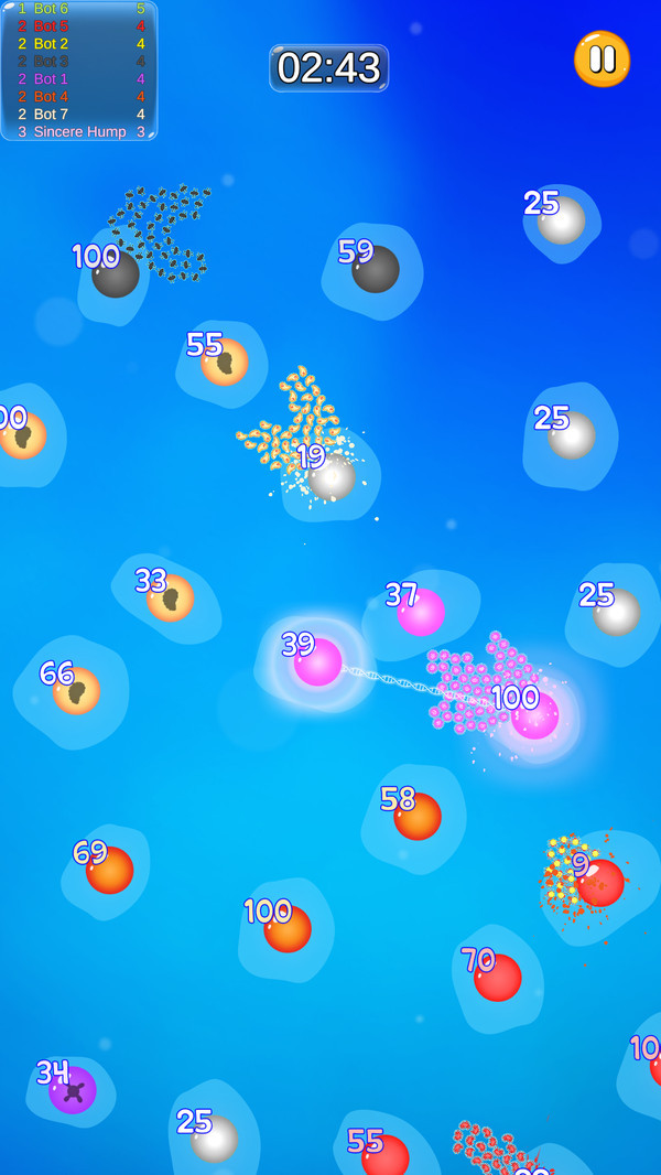细胞分裂大作战是一款趣味休闲竞技类游戏,多场不同挑战等你加入,令人难以置信的趣味玩法,多场游戏等你加入,在这里与你的对手对决,在赛场中击败你的对手,并且使用各种小技巧,削弱你的对手,成为最后一个还活着成为赢家的人。自由在游戏中探索,多场游戏等你加入,每场游戏都十分精彩,几分钟就能轻松体验一局,轻松,欢乐,爽快,还能轻松消遣无聊时间。