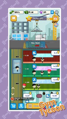 健身房大亨是一款卡通风格的模拟经营健身房游戏,玩家拥有自己的健身房,独特的经营玩法,各种各样的器材等待玩家解锁,丰富店铺内的设施,获得各种专业器材,吸引更多的健身爱好者,更多的顾客来锻炼,获得更多的财富,也可以贩卖一些产品,让自己更加富有。