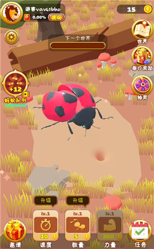 1.挂机放置可以产生更多不同的蚂蚁,种类和数量都能提升。