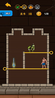 救救裤衩哥游戏是一款益智有趣的闯关小游戏。故事的主角是一个穿着花裤衩的猛男,他在一个城堡中冒险着,采用拉针的益智玩法,我们需要让裤衩哥先拿到武器,然后和怪兽作战。完成关卡的挑战收集金币,可以用来解锁各种不同的皮肤哦,喜欢的话就赶紧下载体验吧。
