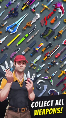 飞刀大挑战(Flippy Knife)是一款趣味十足的卡通投掷闯关游戏,更熟练的物理益智游戏,当心士兵,骑士,忍者和其他勇敢的飞刀!让我们准备战斗吧!我们该怎么办?投掷刀,斧头,剑,镐和其他物品与锋利,可投掷的刀片,爬上树,抓住无人机,击中目标奖金,超过35个世界著名的武器,你需要收集所有成为超级大师。