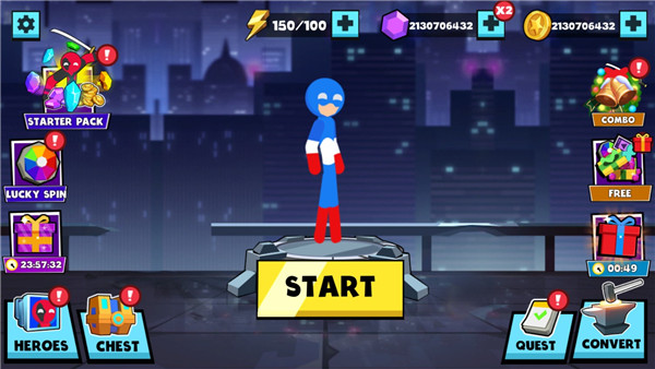 1、在本站下载 超级火柴人英雄战斗,选择“start”开始游戏;