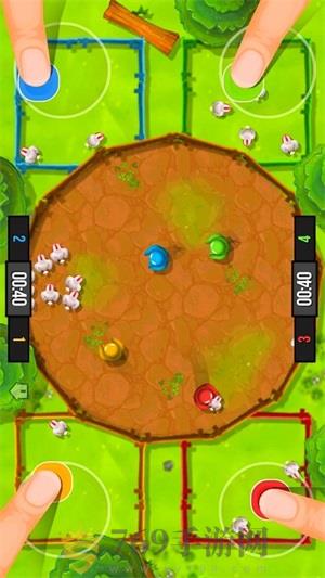 如果游戏者选择的是多人对战的模式的话,那么画面的四个角就会出现四个轮盘,四名游戏者一人操作一个就可以了;