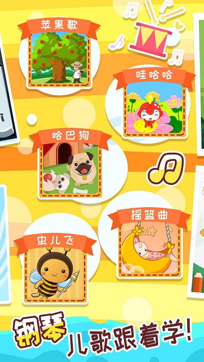 手游收录许多好听而且有名的儿童流行歌曲和童谣使游戏者选择,从而提高小朋友的学习乐趣和动力。