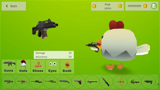 且游戏者还能为自己的小鸡仔打造全副武装包括且不限于武器、鸟喙、运动鞋与帽子等等,自由搭配你喜欢的服饰配件,打造出一只独一无二的霸气鸡仔