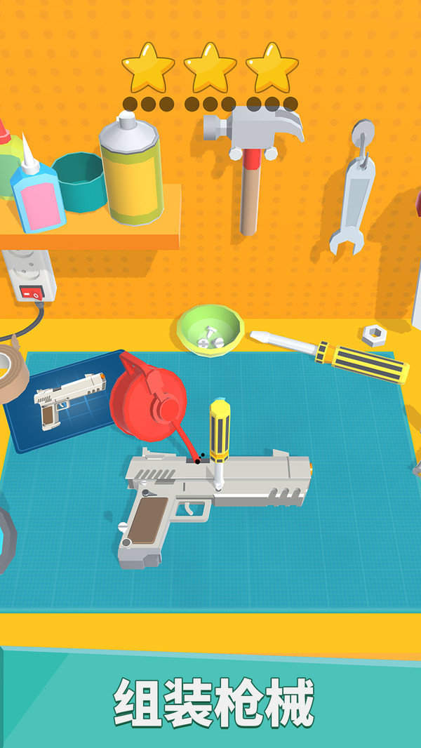 武器拼装模拟器,作为一款枪械组装模拟手游。进入手游,零散的机械零件呈现在游戏者的眼前,在手游里游戏者的任务就是把面前的零件组合强大的武器,组装出完整的枪支。能够体会到超成就感的游戏体验,轻松就能够组装,完成组装后,还可以使用枪支进行射击,尝试射击的快感。在靶场尽情地测验枪支的威力,提高游戏者的射击实力,瞄准直接就能够射中靶心,在手游里面能够感受轻松愉悦的轻松氛围。