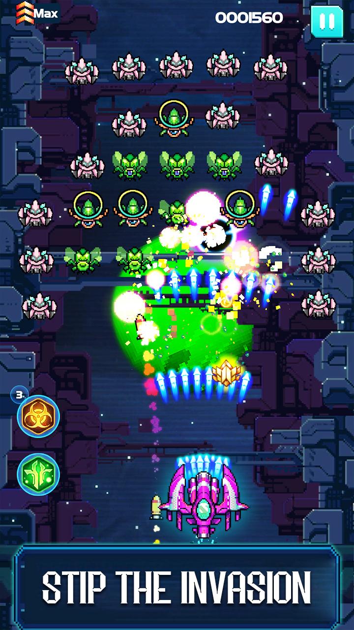 银河入侵者作为一款超级有趣的弹幕休闲射击类手游,在手游里面有着各种令人眼花缭乱的飞机子弹射击,在手游里面几乎所有的飞机射击出来的子弹都是激光型,非常的炫酷,而且攻击范围也是大范围形成的,给你看上去就跟放烟花一般,特别的炫。手游已经成功破解,进入手游即显示大量资源,提升大家的游戏体验。