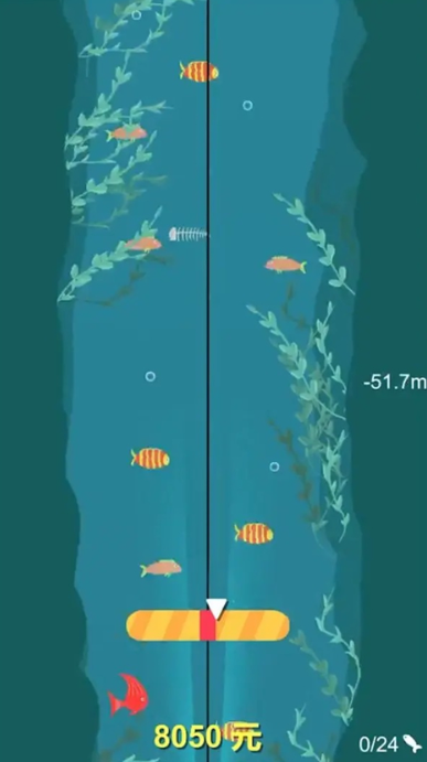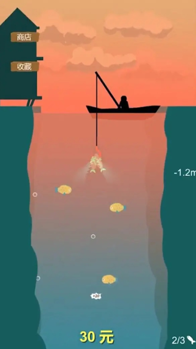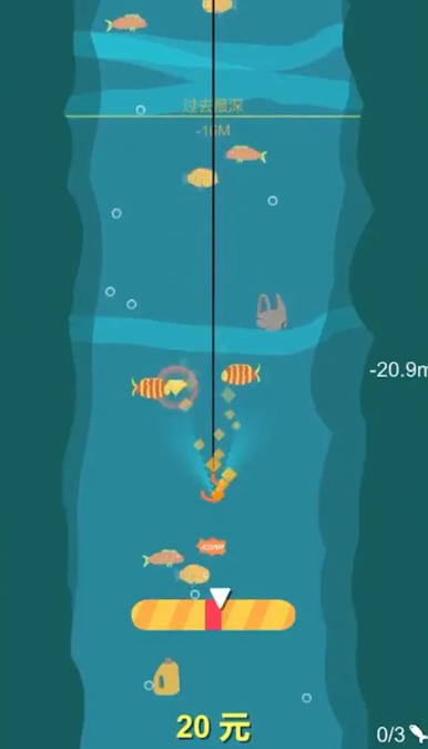 3、到达一定深度后会收杆,遇到鱼会自动上杆;