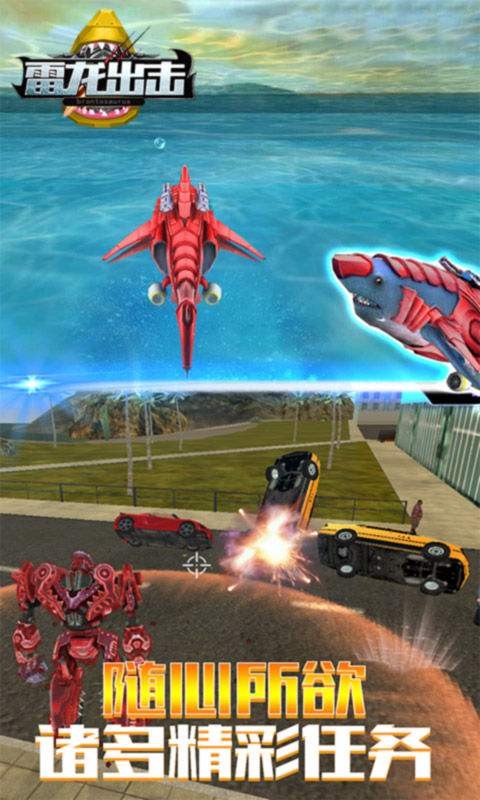 超级机器人能力,激情搏杀,3D鲨鱼可以潜入大海,变身娃娃在城市中行走。