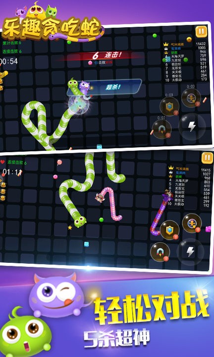 乐趣贪吃蛇是一个非常有意思的贪吃蛇手游,画风非常的卡通可爱,手游操作很简单,就是经典贪吃蛇的。在手游中,在手游里游戏者将操控自己的小蛇先从小豆子吃起,慢慢的吃大之后开始吞噬其他小蛇,最后你就变成第一名啦!手游内有很多的皮肤等你开启哦!感兴趣的小伙伴们快来下载尝试吧!