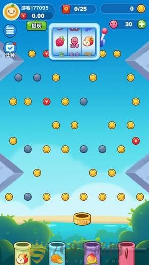 2.游戏者需要控制水果弹珠的方向和力度,击中金币并获得高分。