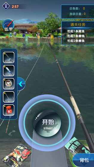 在游戏中,您需要消耗10点体力值来抛出鱼竿。长按屏幕即可将鱼竿抛出。当鱼儿咬钩时,屏幕上的提示会出现,这时您需要迅速反应,再次长按右侧的操作键来稳定鱼竿并防止鱼儿逃脱。