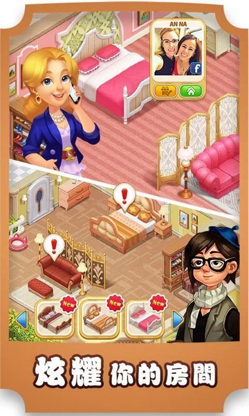 游戏者可以通过完成关卡获得各种装饰物品,自由搭配设计出心仪的房间。