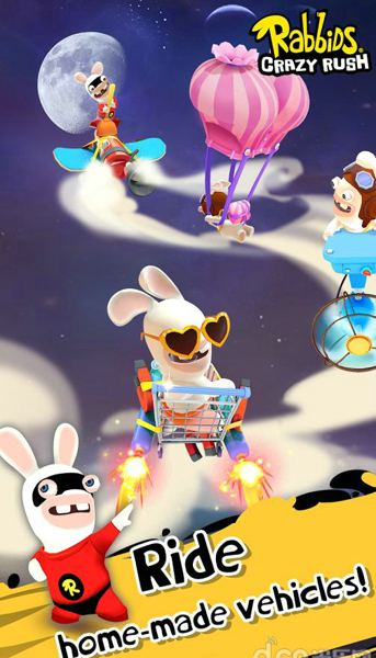 2发现各种妙趣横生的任务,比如让疯狂兔子去撞墙或者被吹上天空开启并升级自制的疯狂交通工具,比如用磁铁驱动的推车或用粉色裤子制作的巨型滑翔器