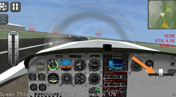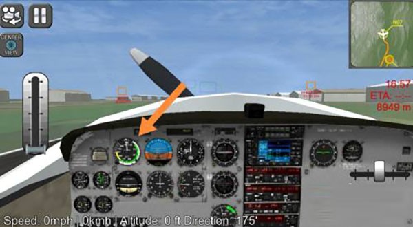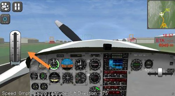 1.如图所示,先滑动箭头所指的操控杆,可以进行直升机的启动。