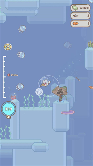 3、升级养成:通过收集资源提升猫咪潜水装备,解锁更多潜水技能和趣味服装;
