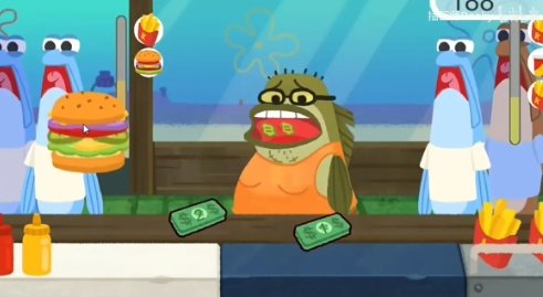 玩法和沙威玛传奇非常相似,加入了蟹皇堡的元素,客人也是动画中的角色。