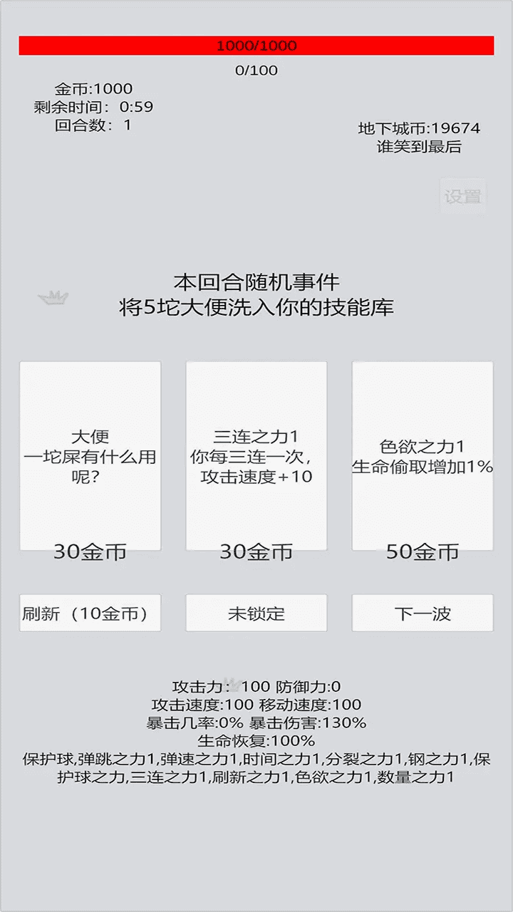 2.每一轮都会有一个随机事件,给游戏增加了更多的不确定性和挑战性。