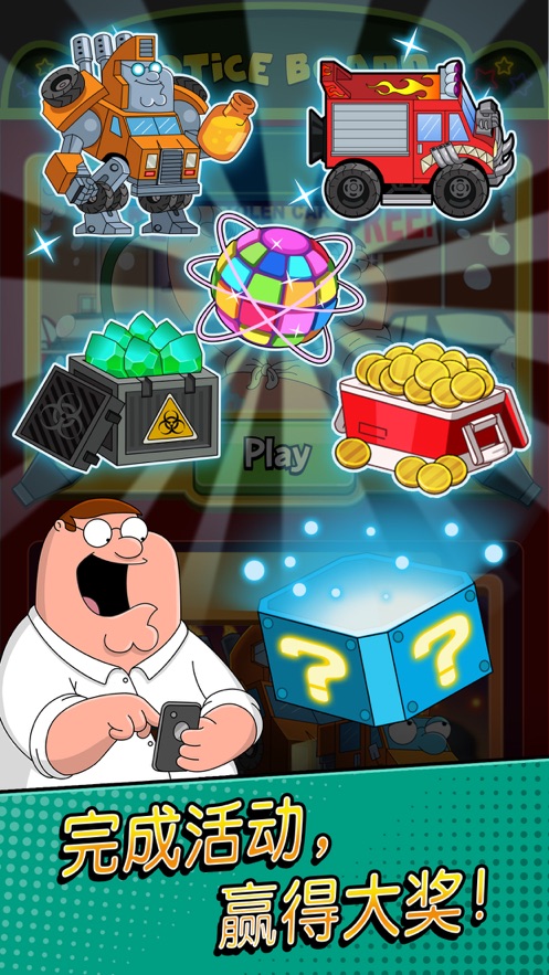 3、恶搞之家:奇葩消除在有限时间内完成任务,赚取收藏品,可用于解锁经典角色服装,硬币,助推器和家庭故事情节等。