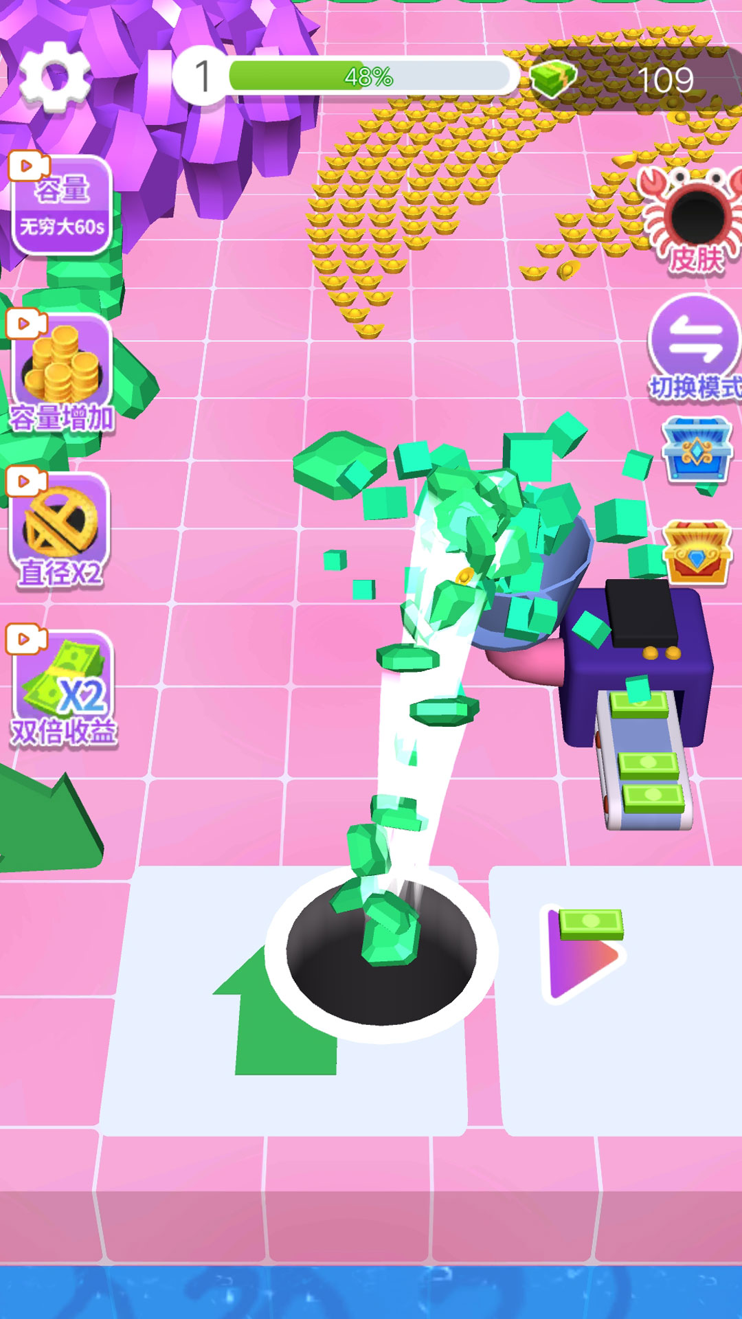 黑洞吞噬进化手游作为一款黑洞模拟手游,你能通过滑动屏幕来操控黑洞的移动。在移动过程中,会有各种大小的物品出现在你的视野中。小物品可以被直接吞噬,而大物品则需要不断地吞噬小物品来慢慢消耗。每当你吞噬了一些物品,便可获得相应的收益。这些收益可以用来升级黑洞的移动速度和容量等。