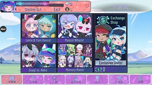 进入手游后,可以看到有主菜单、工作室、人群、随机抽奖、战斗、小手游等等;