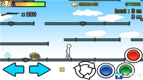 为了避免敌人的枪和机器人的攻击,你将需要按按钮键移动到左侧。