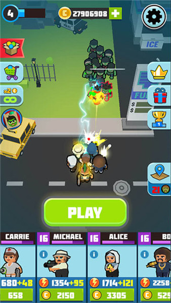1如果你跑累了,又想继续杀僵尸——你可以选择空闲模式。加强你的团队并开启新的复仇者联盟——即使你在睡觉,他们也会继续与僵尸作战!