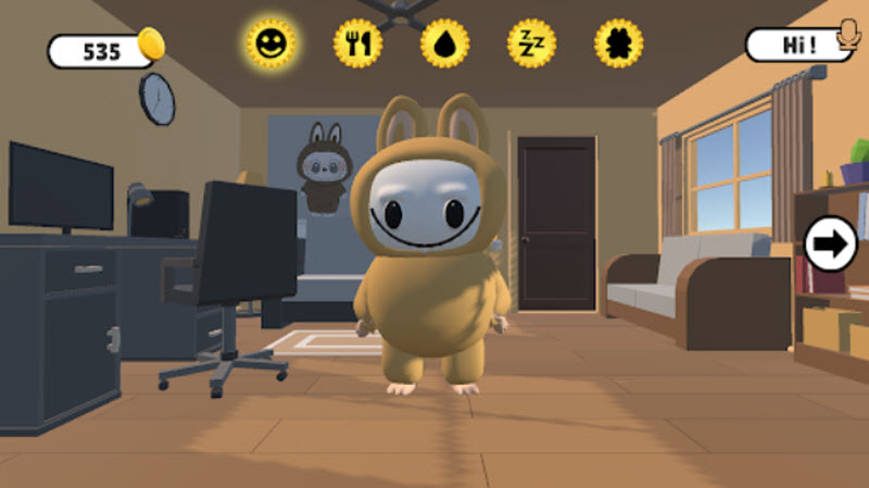 3、拉布布会根据玩家的操作做出不同的反应,如开心、撒娇、困倦等,增加了游戏的真实感和趣味性。
