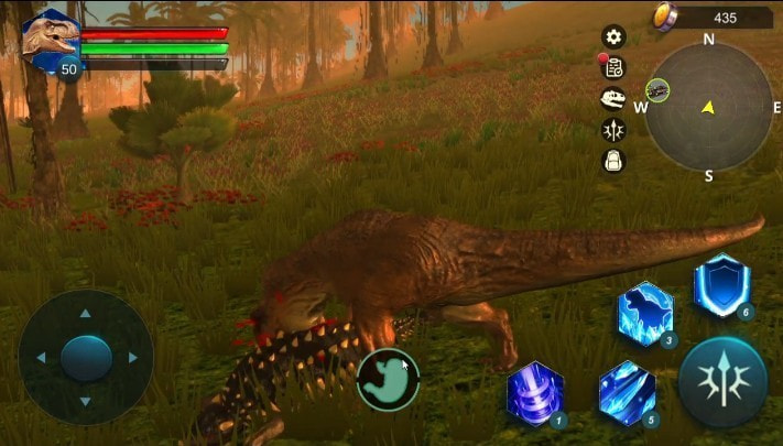 4.通过击败其他恐龙获得的经验和等级,升级可以解锁新技能,获得更多生命值,并解锁其他霸王龙!