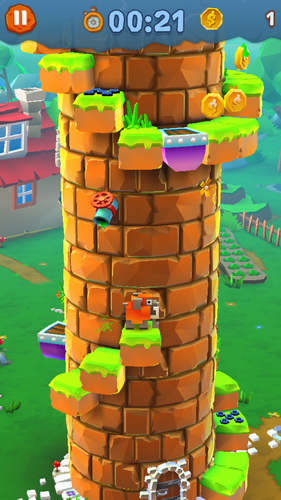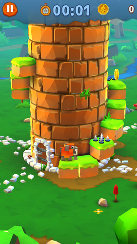 2、游戏在操作上采用了全屏滑动的操作方式,我们通过手指左右滑动屏幕来控制角色左右跳动,若是遇到台阶,角色也会自动跳跃上去.游戏的操作还是比较简单的,只是最开始小编以为滑动屏幕是整个圆柱城堡转动,结果是控制角色跳跃,这到让小编不小心死亡了一次,闹了些笑话,不过熟悉之后操作起来还是轻松的,灵活性和精准性都很不错,新手玩家们也能轻松掌握.