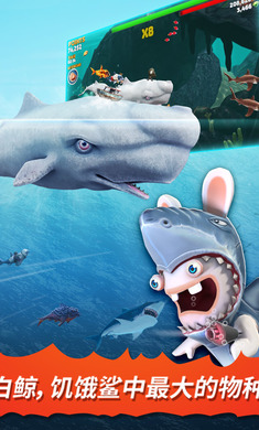 与其它鲨鱼、潜水艇,以及更多奇奇怪怪的深海生物作战,获得高分!完成50个任务,寻找宝物取得金币与宝石,用来升级你的鲨鱼或者购买特殊救生道具。
