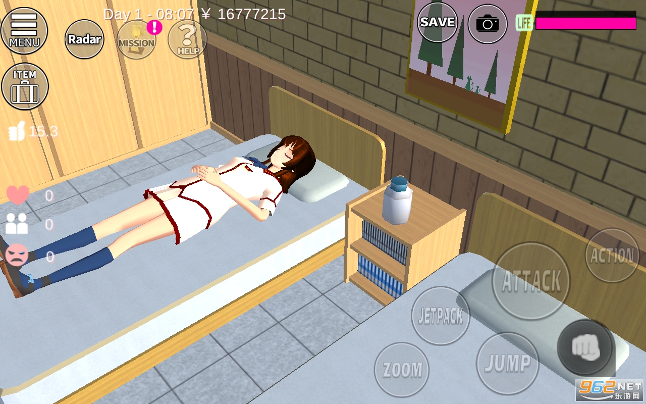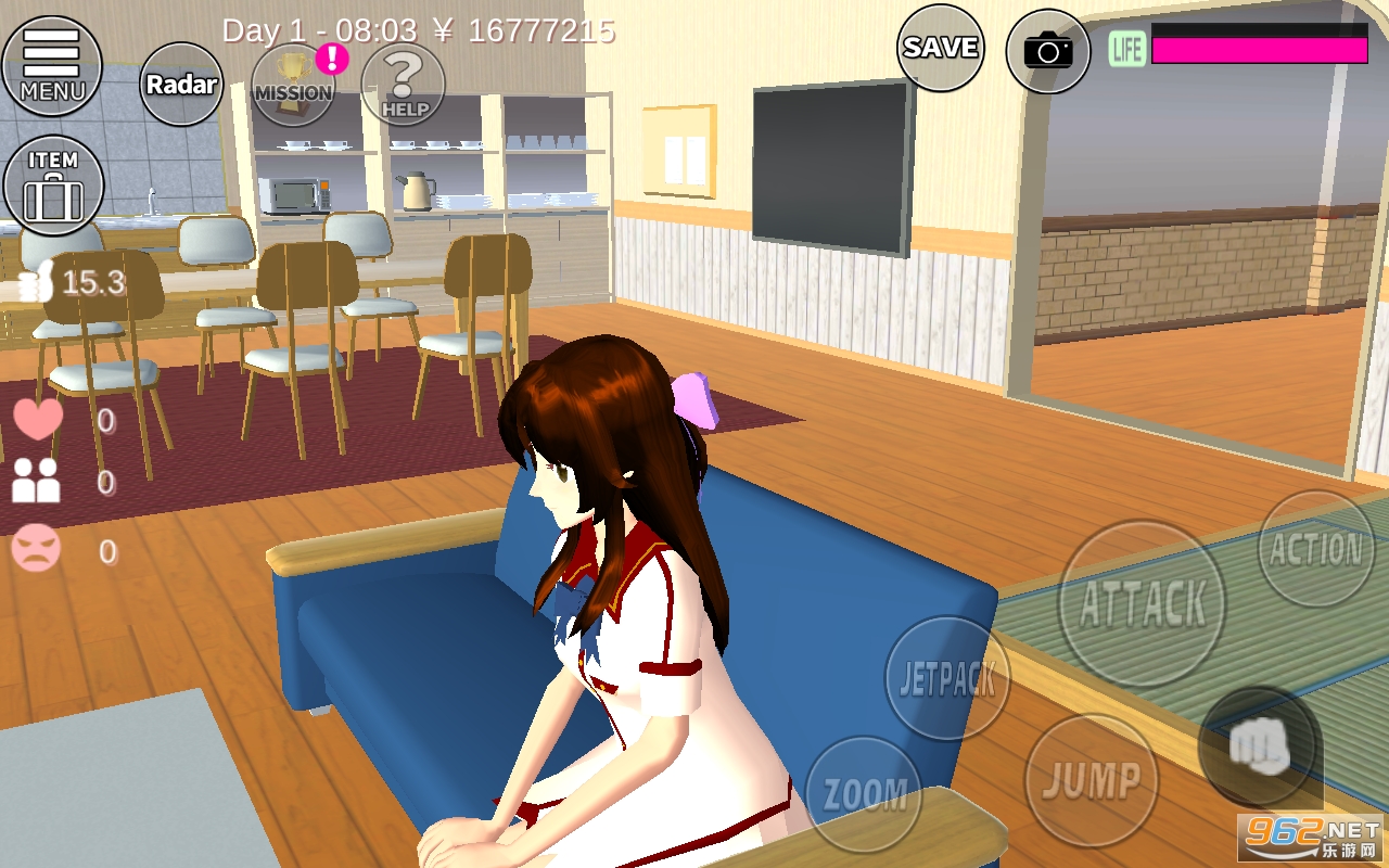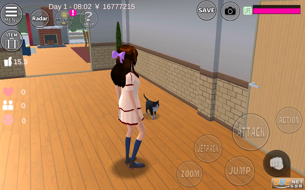 1、游戏以3D二次元的画面打造,所有的场景都非常真实,玩家将控制一个女高中生开始游戏;