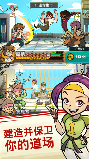 2然后不断点击,建造更大更好的房间,训练学生们,并招募武术大师助阵
