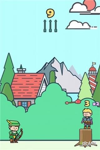 在这儿仅有射中小人头顶的水果才可以顺利过关,每一关游戏者拥有3次机会。