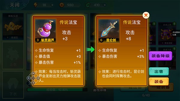 3.装备完后可以查看自己的生命值、攻击力等属性。