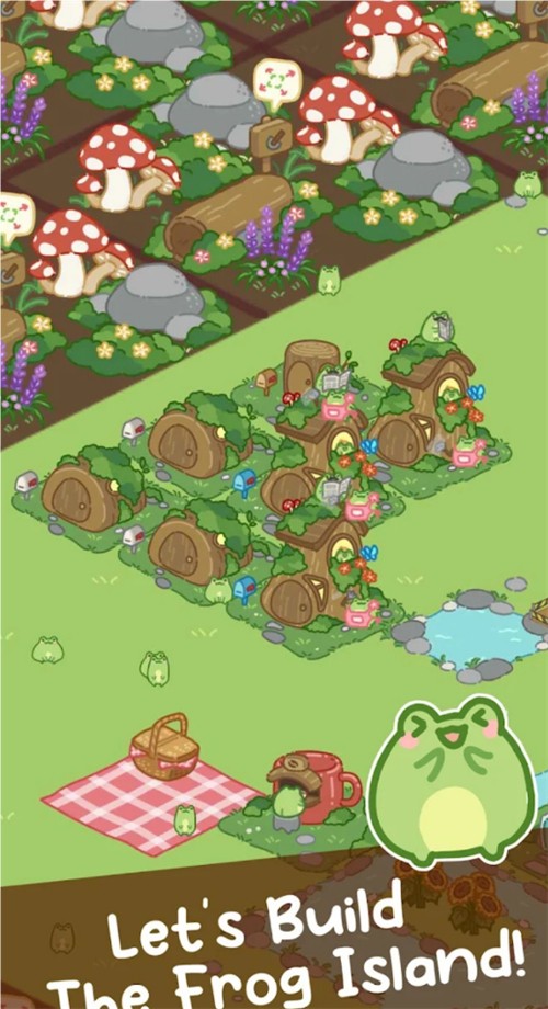 2、青蛙小镇中有大量的青蛙角色,玩家可以与这些青蛙互动,共同建造一个小镇,获得美好的回忆。