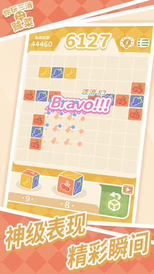4、消除后,会出现特殊的音效,听起来非常有趣,游戏的背景音乐是轻快而有节奏的纯音乐。